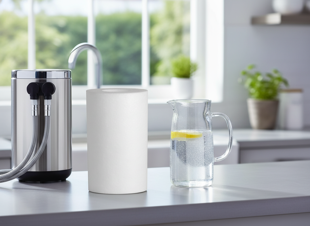 1 mikron pórusméretű, polipropilén (PP) mechanikai, üledék szűrőbetétet 10″-os BigBlue méretben.