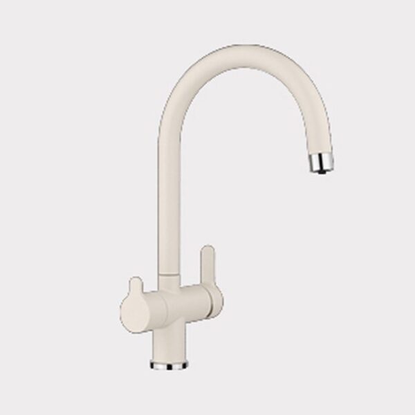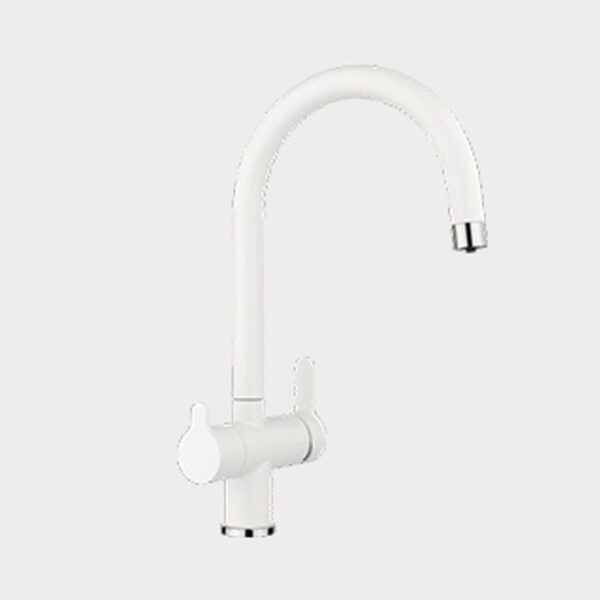 A három utas (hideg, meleg, tisztított víz) inox víztisztító csaptelep, alkalmazható a legtöbb típusú Magyarországon forgalomba helyezett ozmózisos víztisztítóhoz.