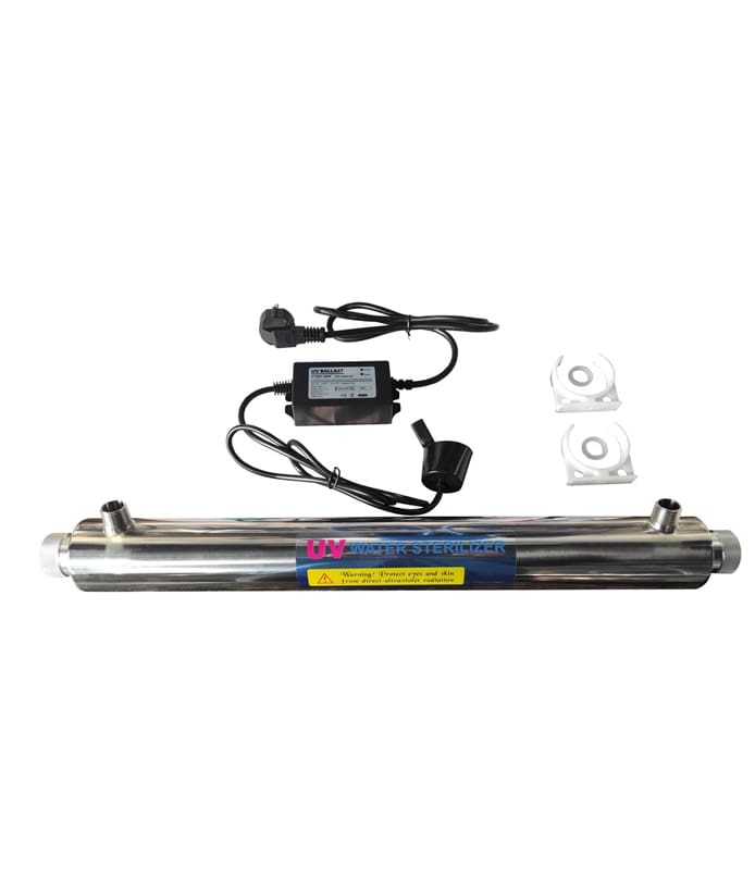 UV lámpa teljesítmény: 3 x 55 W, csatlakozás: 1/5″ kapacitás: 8,3 – 20,6 m3/h méret: 283×133×950 mm