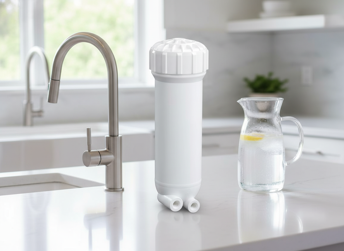 RO (fordított ozmózis) membránház 2,5″-os (3012-es membránszűrőkhöz), belső menetes csatlakozással.